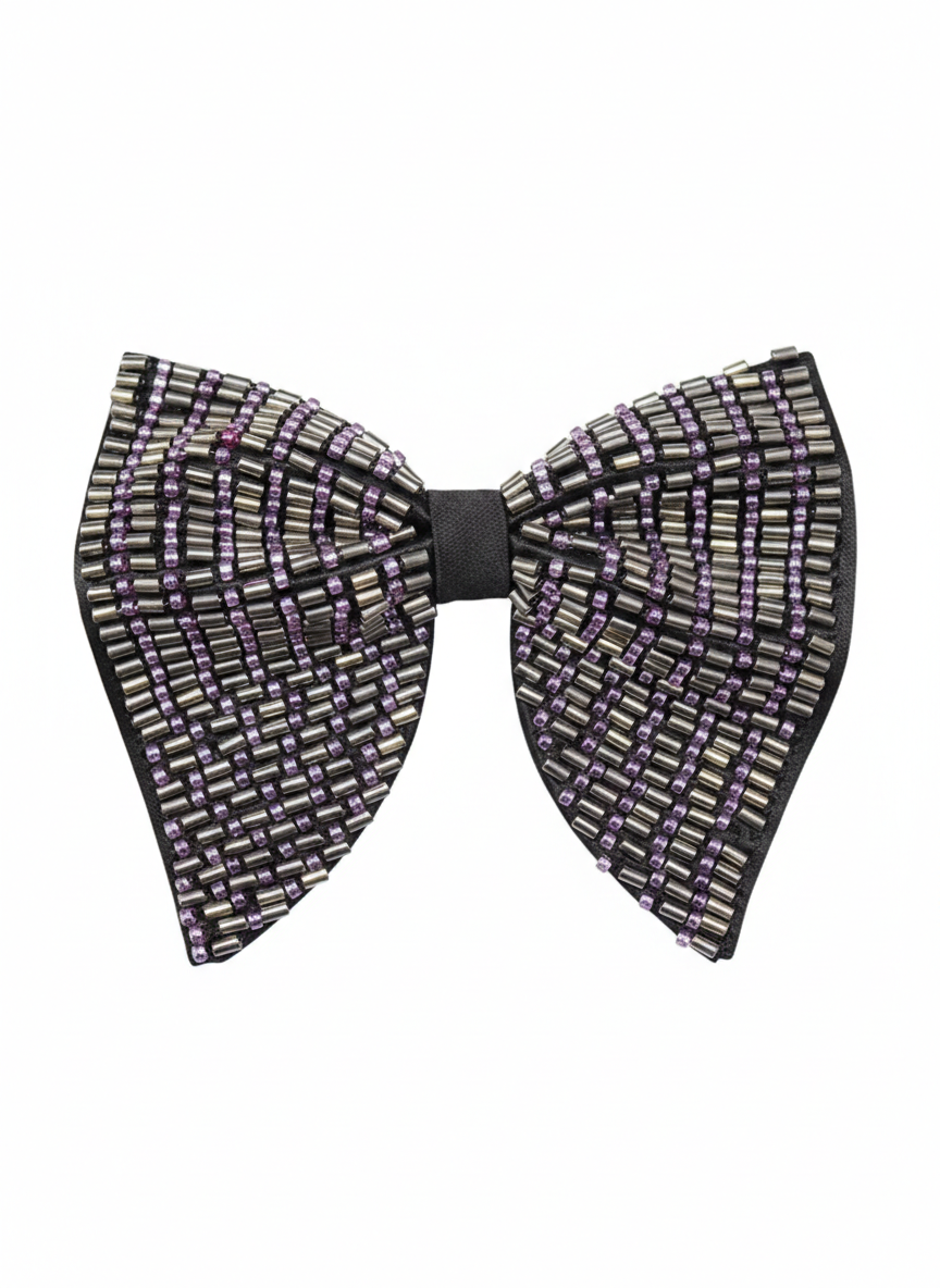 Hand-Beaded Silver & purple metallic Crystal Bow Tie