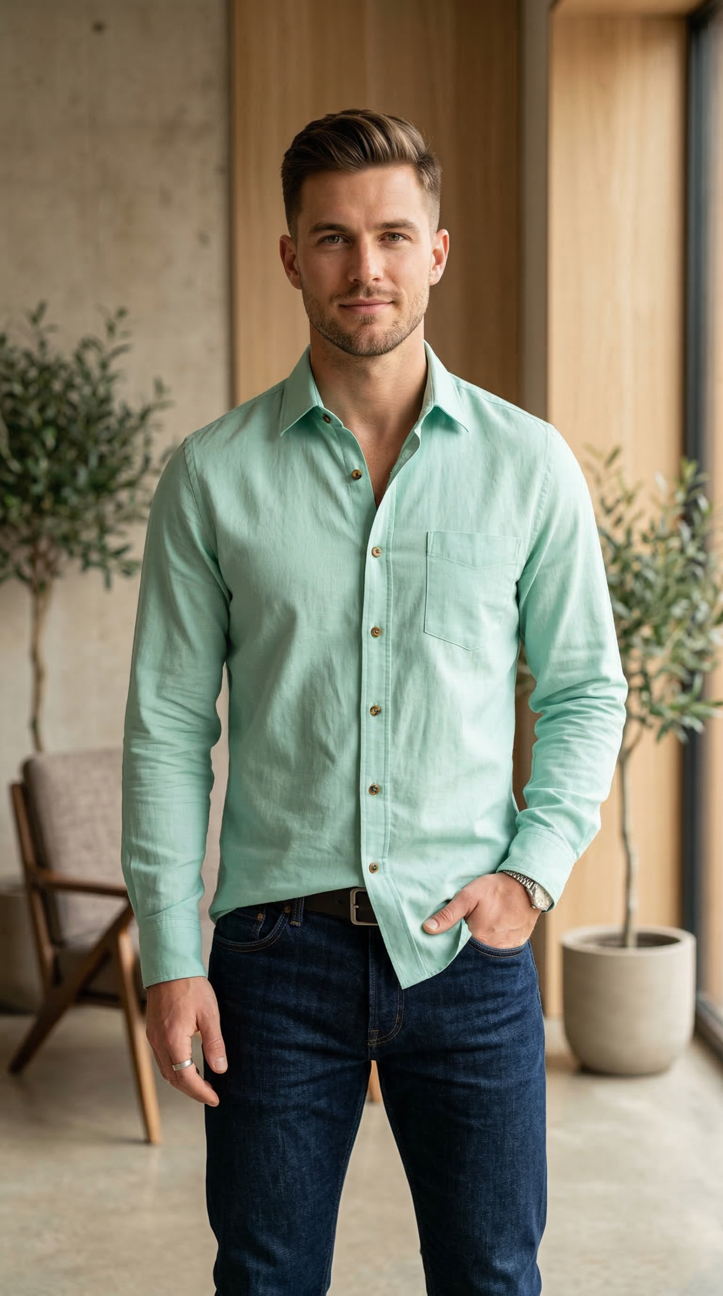 Stay cool and look sharp with this casual pastel mint button-down. Crafted from a premium breathable blend, this shirt features a soft, natural texture that prioritizes comfort without losing its tailored edge. The vibrant seafoam tone offers a modern, casual flair that pairs effortlessly with dark indigo denim or light tan chinos. Whether you’re heading to a coastal brunch or a casual evening social, this shirt provides a crisp, airy silhouette that stands out for all the right reasons.