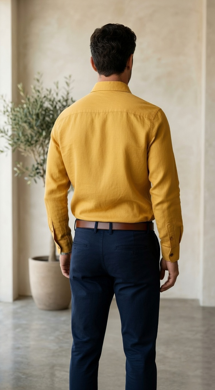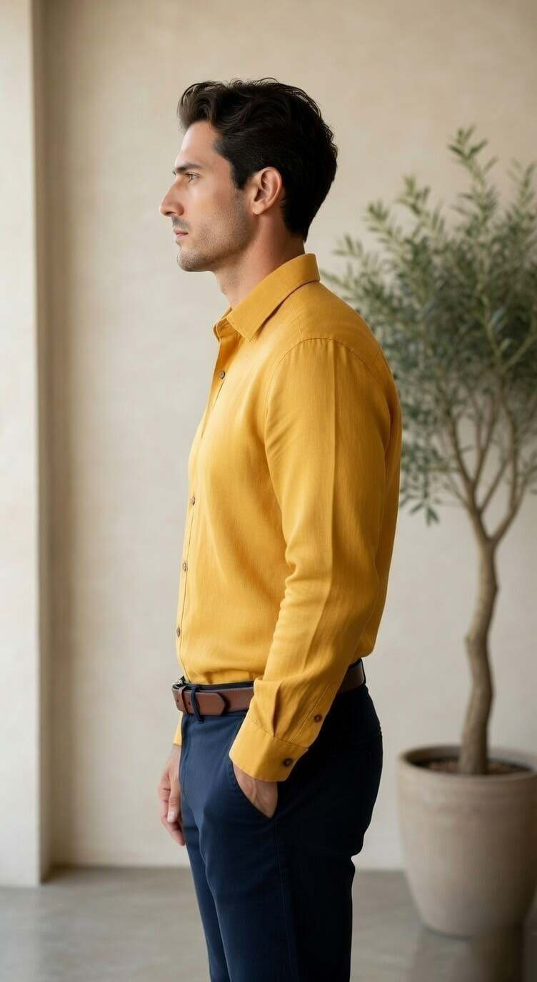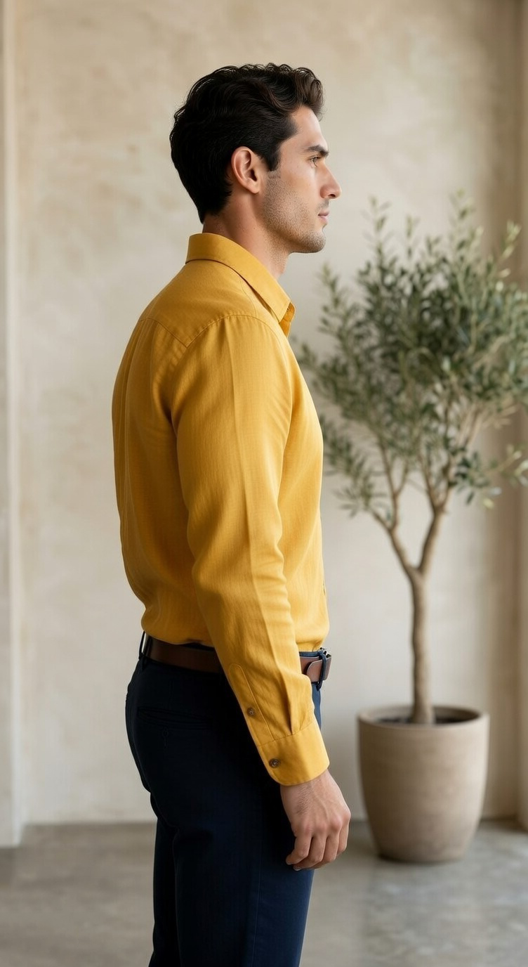 Brighten up your wardrobe with this vibrant casual mustard button-down. Expertly crafted from a premium linen blend, this shirt features a distinctive slub texture that provides natural breathability and a relaxed, lived-in feel. The deep golden hue offers a sophisticated pop of color that pairs exceptionally well with navy chinos or dark denim. Whether you’re heading to a casual gallery opening or a weekend brunch, its tailored fit and soft-structured collar ensure you look polished while remaining completely casual and comfortable.