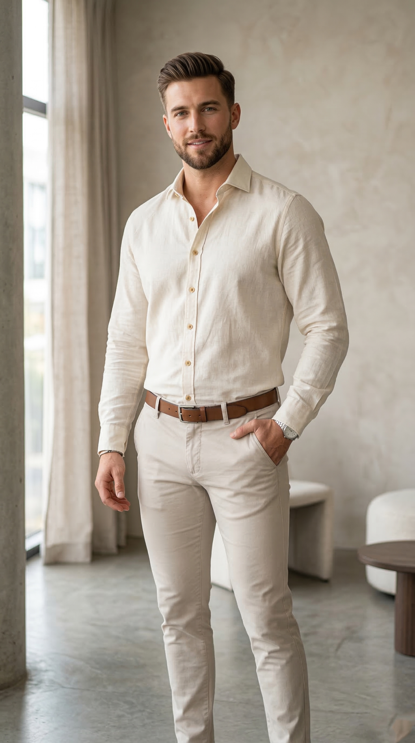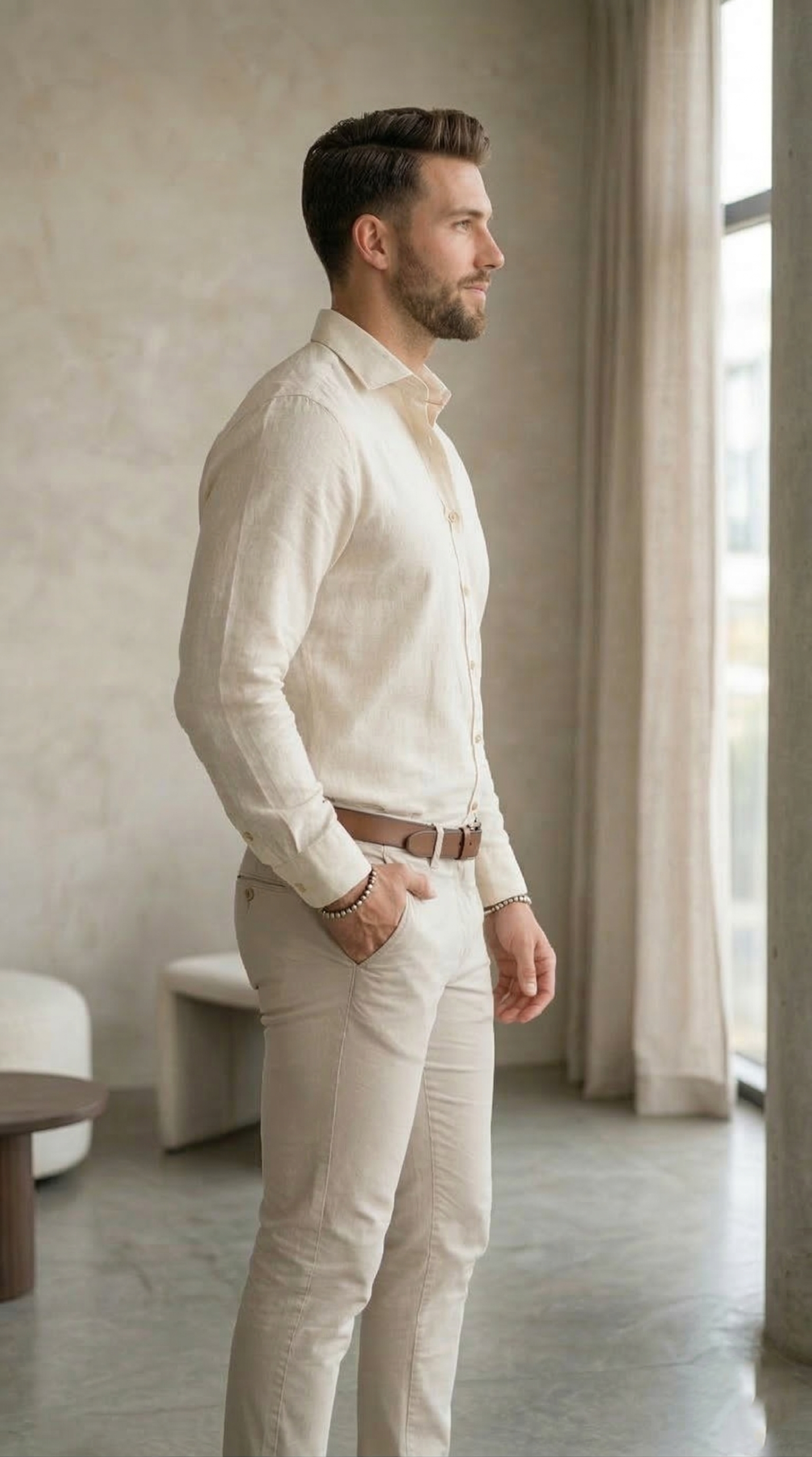 Embrace effortless elegance with our Men’s Casual Cream Linen-Blend Shirt. Designed for warm-weather style and sun-drenched afternoons, this shirt features a lightweight, breathable weave that keeps you cool while looking sharp. The soft off-white cream tone provides a refreshing, casual alternative to stark white, offering a more sophisticated and approachable look. Whether you’re heading to a casual beachside brunch or a rooftop gathering, its tailored fit and natural texture make it a versatile hero piece for any modern wardrobe.