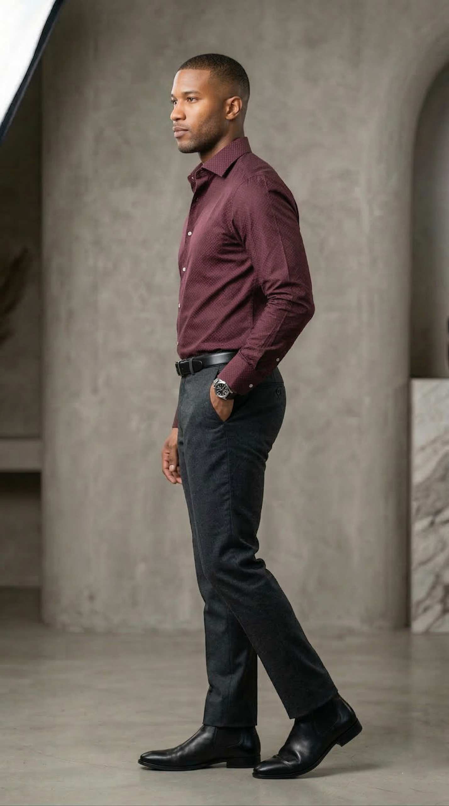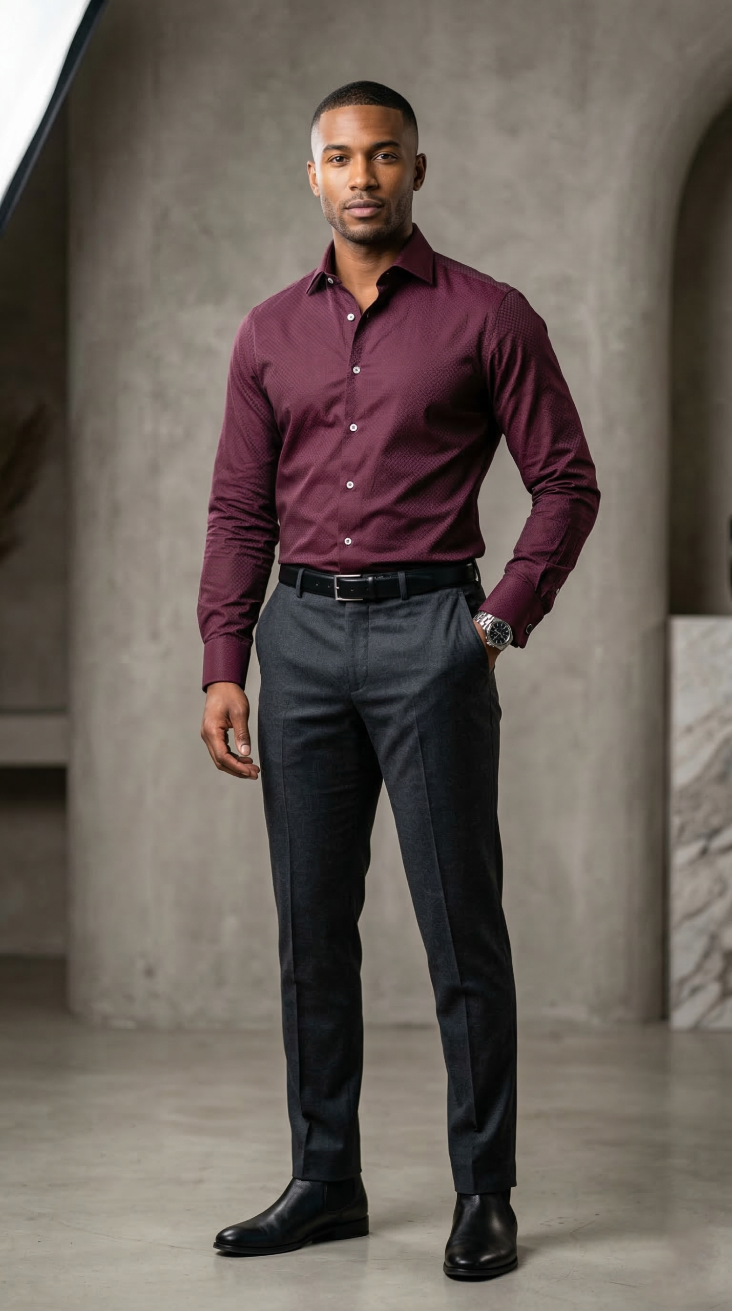 Redefine your professional look with the Designer Series Shirt. Crafted in a deep, executive burgundy with a sophisticated micro-texture, this shirt offers a tailored silhouette that transitions effortlessly from the office to evening events. Premium fabric meets modern design for the man who demands excellence.
