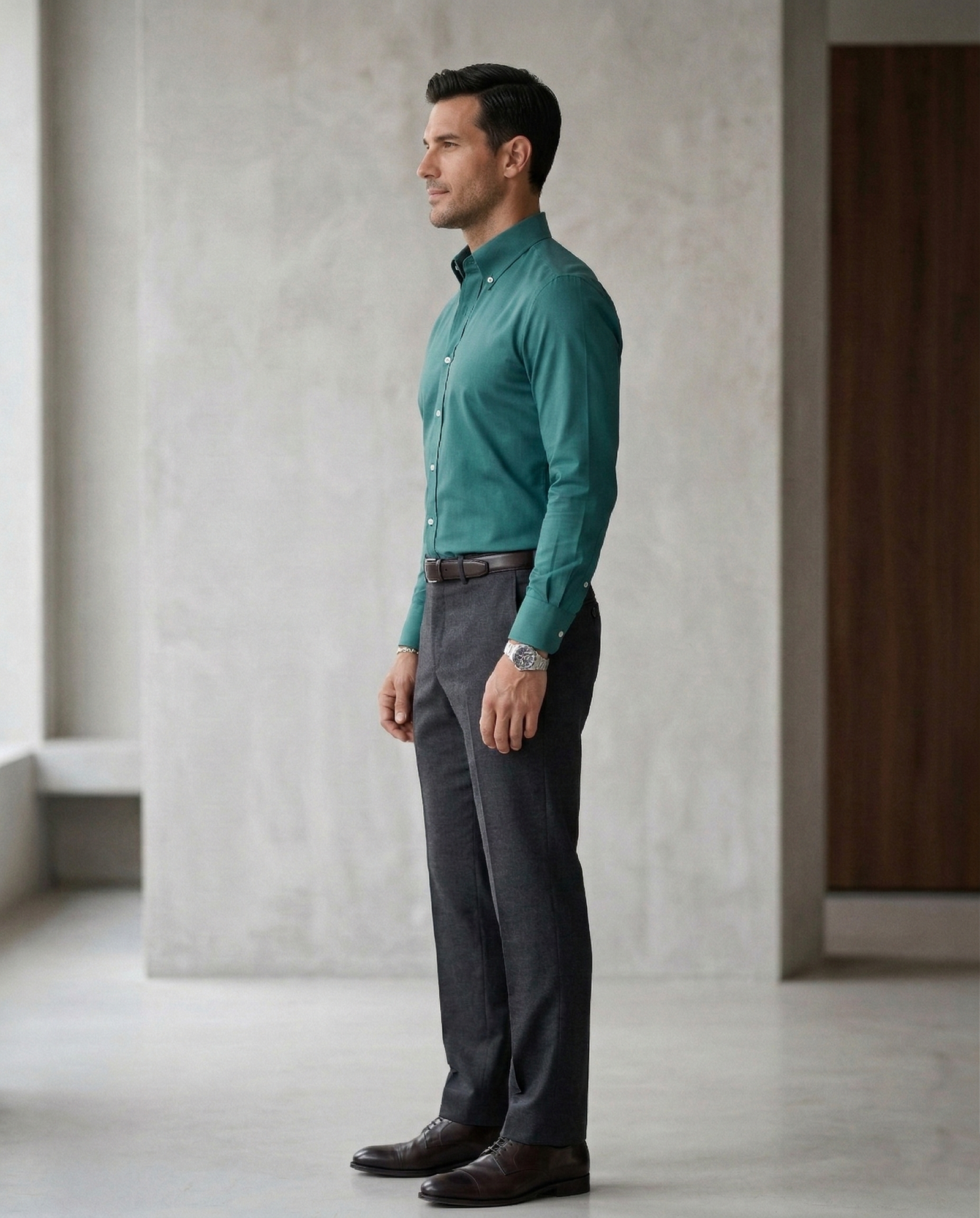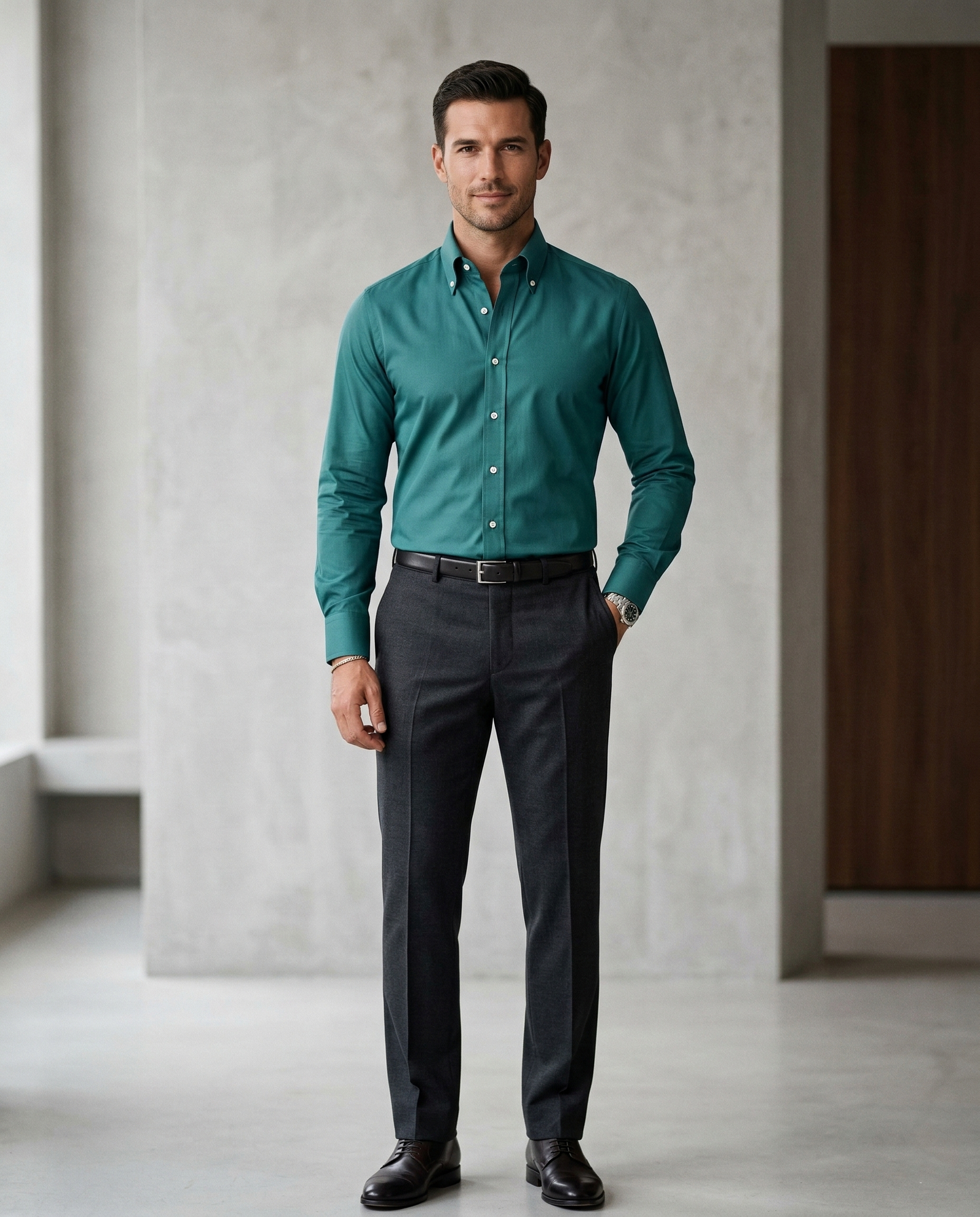 Made from premium cotton blend fabric, it provides excellent comfort, breathability, and durability for all-day wear. The rich teal color gives a refined and fashionable appearance, making it ideal for office wear, business meetings, parties, and special events.