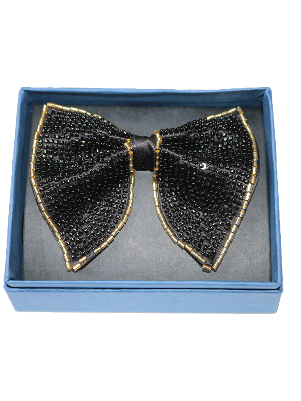 shimmering gold-beaded border. The wide butterfly silhouette provides a