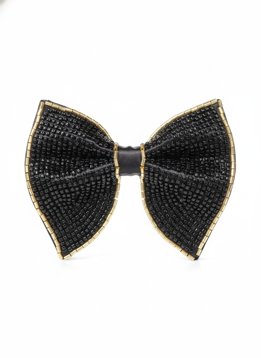 ● Textured Sophistication: Intricately hand-beaded with black seed