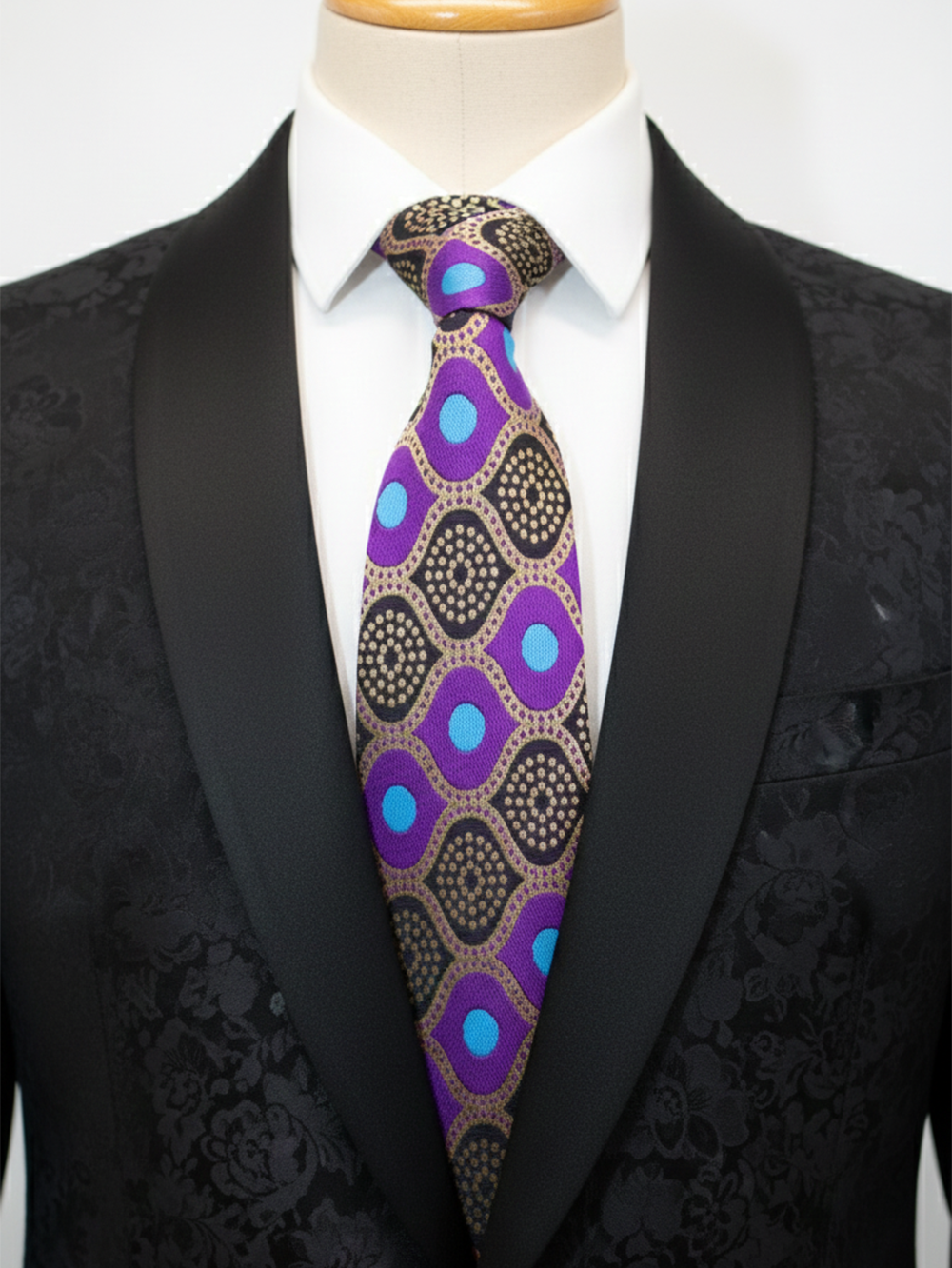 Add a touch of elegance and sophistication to your formal look with this *Premium Men?s Silk Tie. Designed with a rich **purple geometric pattern*, this tie perfectly balances modern style with classic charm.