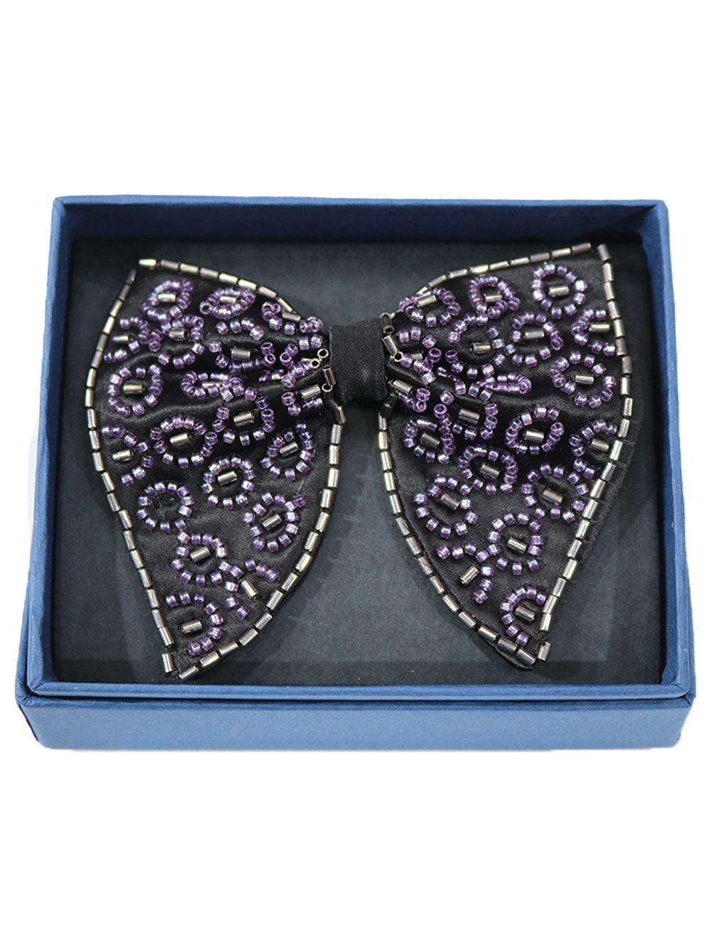 purple bugle beads applied in a precise geometric layout.