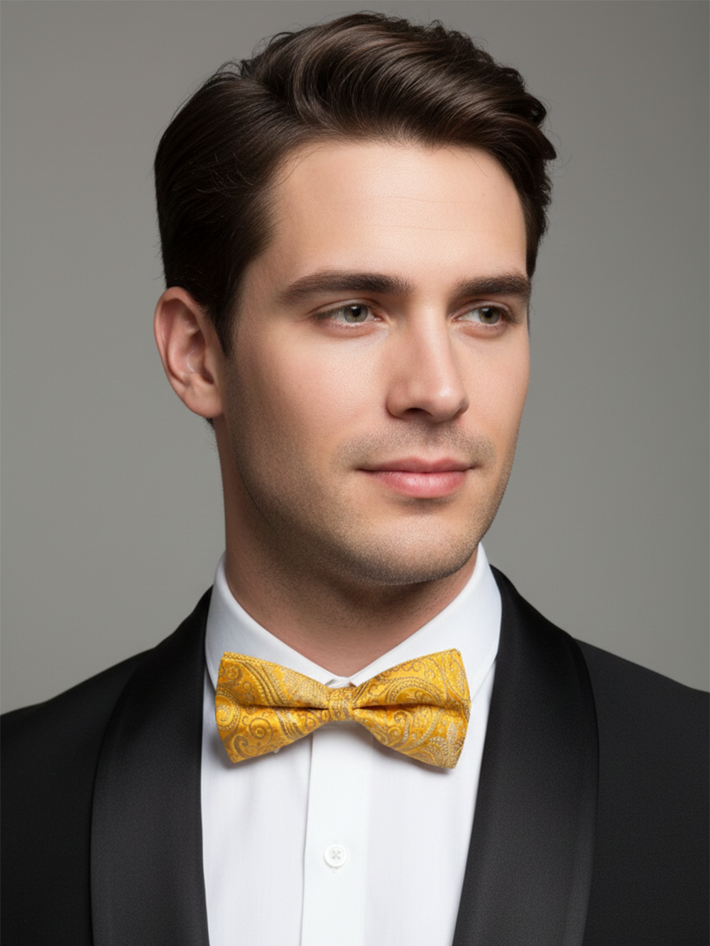 Whether you?re attending a spring wedding, a summer gala, or looking to brighten up a winter charcoal suit, this bow tie serves as the ultimate focal point. The vibrant yellow hue is carefully balanced?bold enough to make a statement, yet refined enough to maintain a classic aesthetic. Its pre-tied construction ensures a crisp, symmetrical knot every time, while the adjustable neck strap provides a comfortable, custom fit for all-day wear.